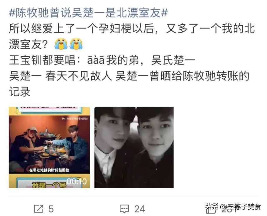 被曝光的工夫,陈牧驰直接光速切割,称是兄弟情,亲一下很平常,并将吴楚一划分为“北漂室友”。
