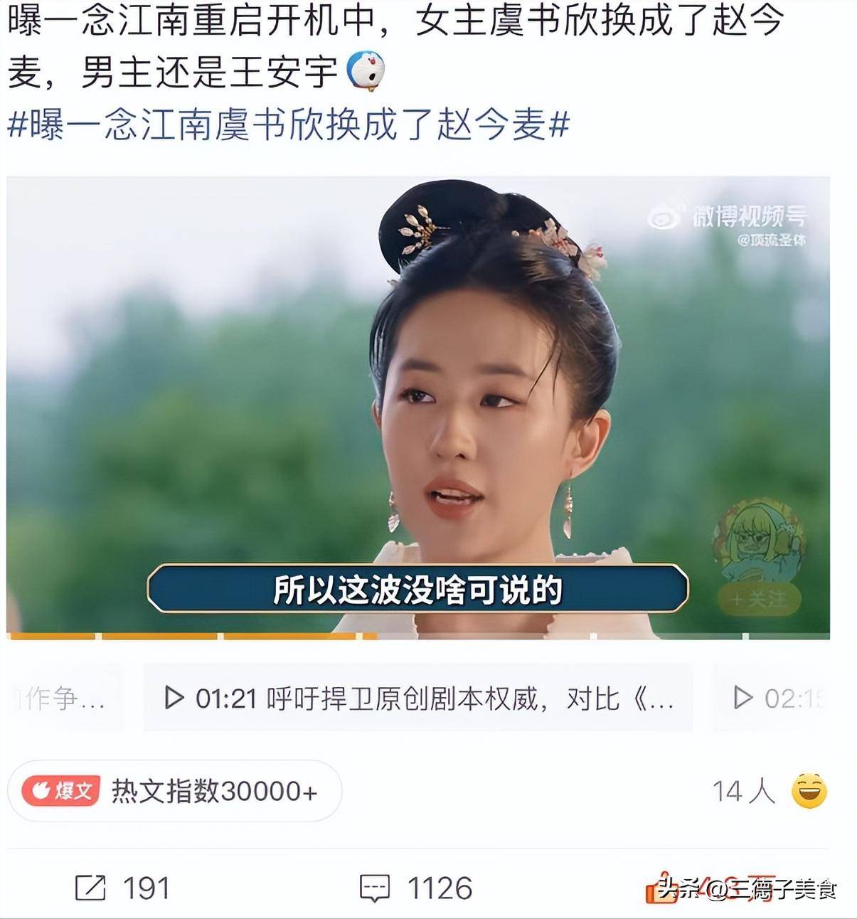 而这位顶流便是“内娱着作精”虞书欣,3月28日有博主爆料电视剧《一念江南》剧组正式重启。
