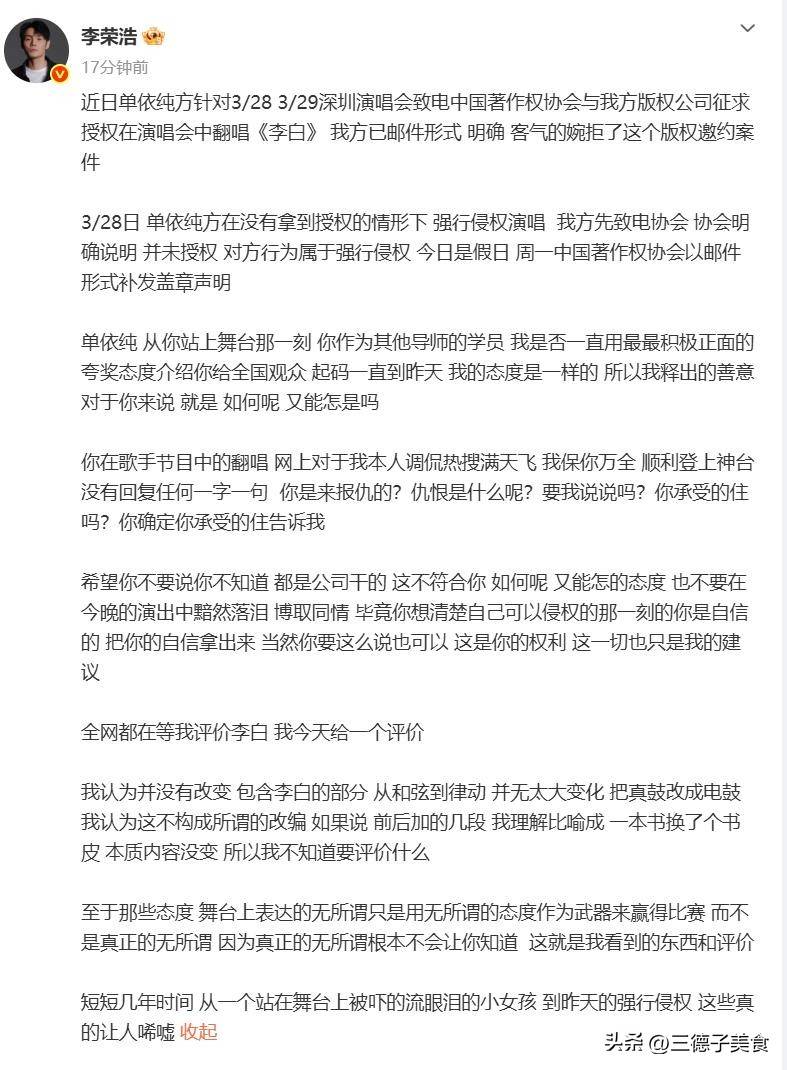单依纯一首特立独行的《李白》,为节目带来了热度,却也给她带来了不小的真意。