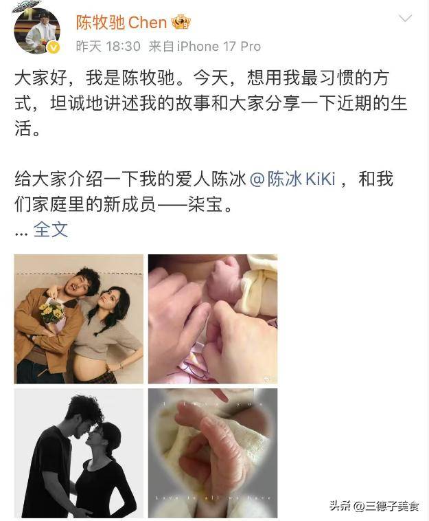 3月28日,陈牧驰正在社媒上发长文,“官宣”了自身的恋人陈冰,和家庭新成员儿子“柒宝”。